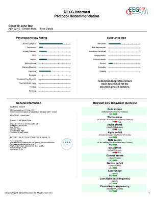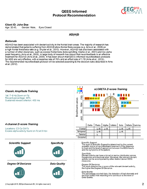 In order to request a Protocol Recommendation Report, you would need a processed EEG (Eyes Open or Eyes Closed) and a measure of the symptoms of the client. This can be one of the two online questionnaires: the ‘Client Questionnaire (old)’ which is available for all qEEG-Pro subscriptions, the ‘Questionnaires’, which is a set of validated and normed questionnaires which are only available when you purchase the Psychological Assessment subscription and finally the ‘Therapist Rating’, which is a rating scale for the main pscychologal disorders and need to be filled out by the clinician.