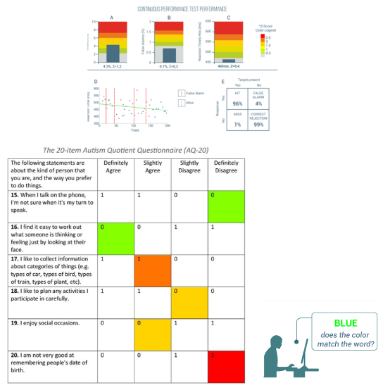qEEG Coach includes built-in tools for administering online questionnaires and cognitive performance tasks. These modules allow users to collect structured behavioral and self-report data alongside EEG recordings within the same platform. Results can be reviewed independently or alongside EEG-derived features to support exploratory data analysis.